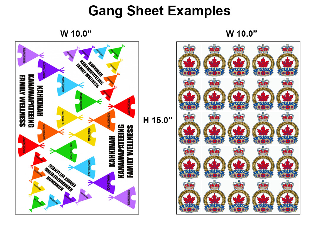 If you are printing a "gang sheet" then you will generally use a larger sheet and pack it with any number of images. They can be multiples of the same images or a mix of any number of various images that will fit on the sheet. Pack the sheet full to get the best value per print.